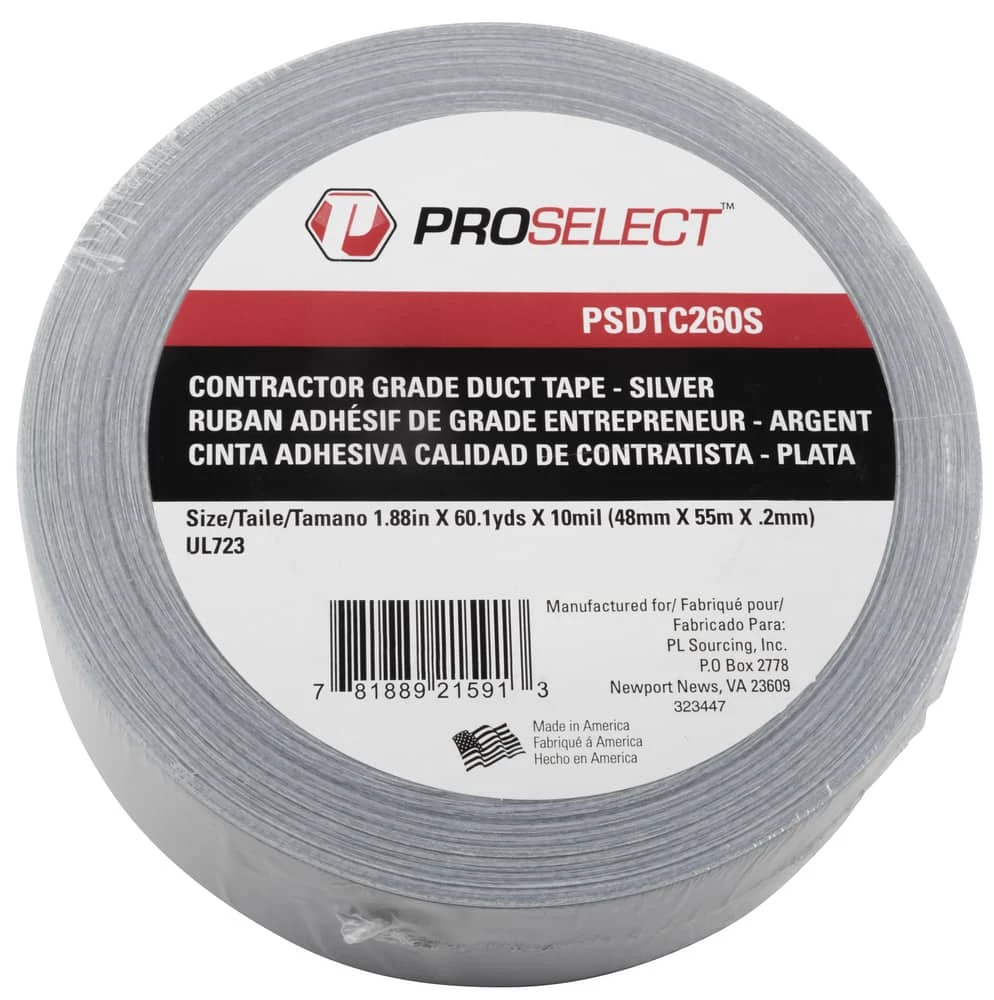 PROSELECT® 2 in. x 60 yd. Plastic Rubber Duct Tape Premium Grade in Silver